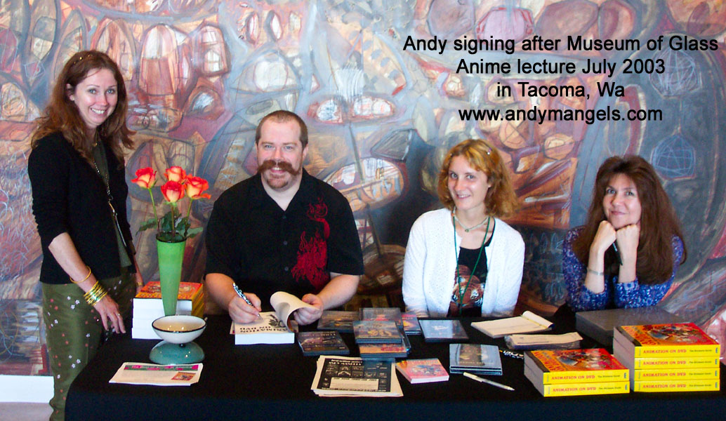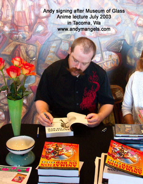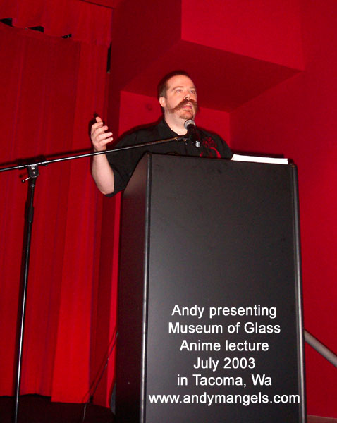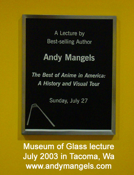 ANDY MANGELS appeared at the Museum of Glass exhibit "My Reality: Contemporary Art and the Culture of Japanese Animation" delivering a lecture and visual presentation called The Best of Anime in America: A History and Visual Tour. This was in Tacoma, WA on July 27, 2003