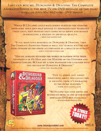 "The companys Ink & Paint imprint has made a habit of producing terrific DVD sets, but this one is the best I've seen by far. It's a D&D fan's dream...BCI Eclipse has gone above and beyond to bring us one of the finest nostalgia DVD sets available. Grade A+"